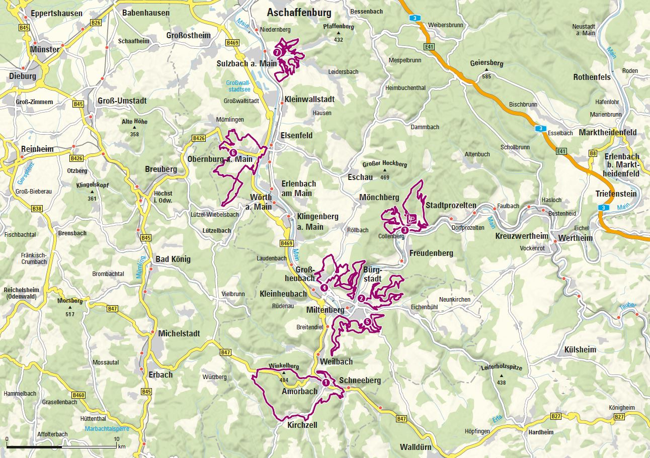 Das natürliche Landschaftsprofil Churfrankens reicht von flachen Strecken entlang des beschaulich dahinfließenden Mains bis zu herausfordernden Anstiegen in echter Mittelgebirgsqualität.
